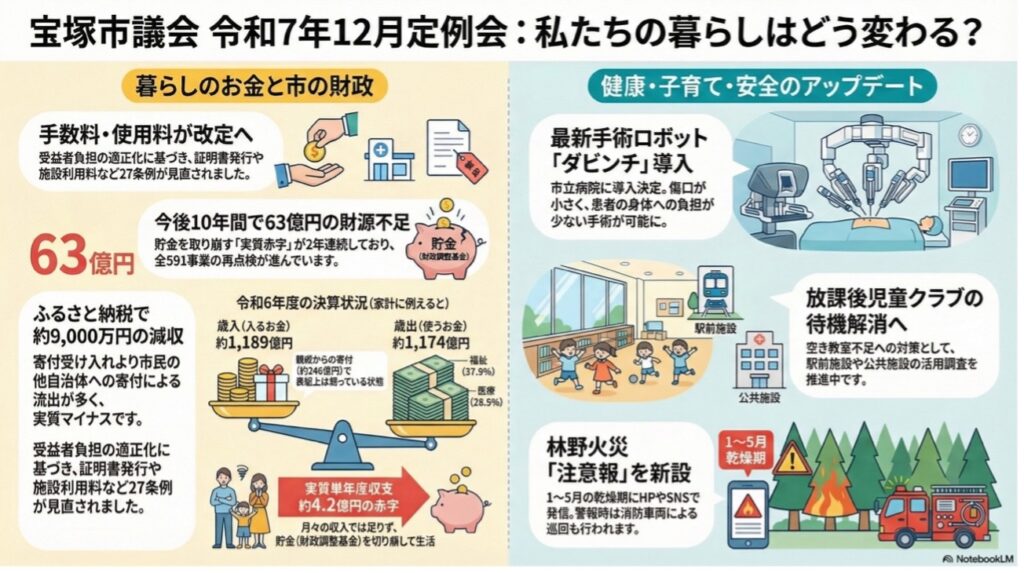 今回の議会では、行財政改革、受益者負担の適正化、決算認定、市立病院の予算など、市民の皆さまの暮らしに直結する重要な議論が交わされました。副議長として立場から、また一人の議員として市政を見つめてきた立場から、今回の議会で何が議論され、それが皆さまの暮らしにどうつながるのかをお伝えしたいと思います。