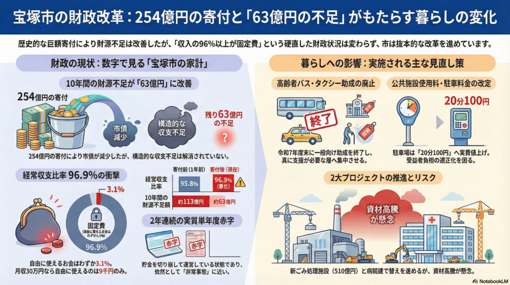宝塚市の財政状況を語る上で、避けて通れない数字があります。